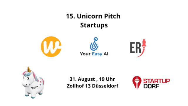 Am 31. August ab 19 Uhr heißt es wieder “Pitch your Startup” beim StartupDorf Unicorn Pitch im Düsseldorfer Medienhafen.